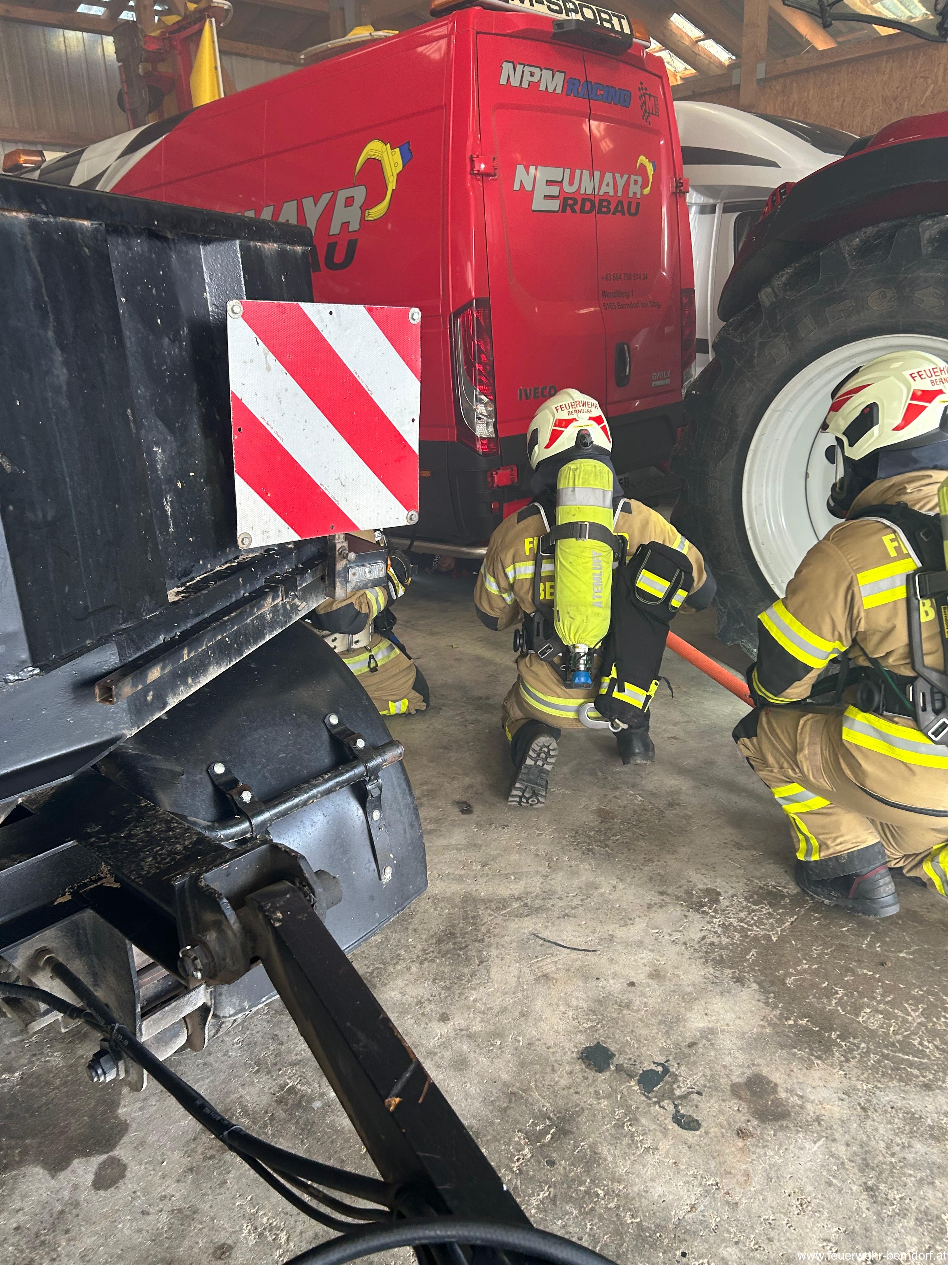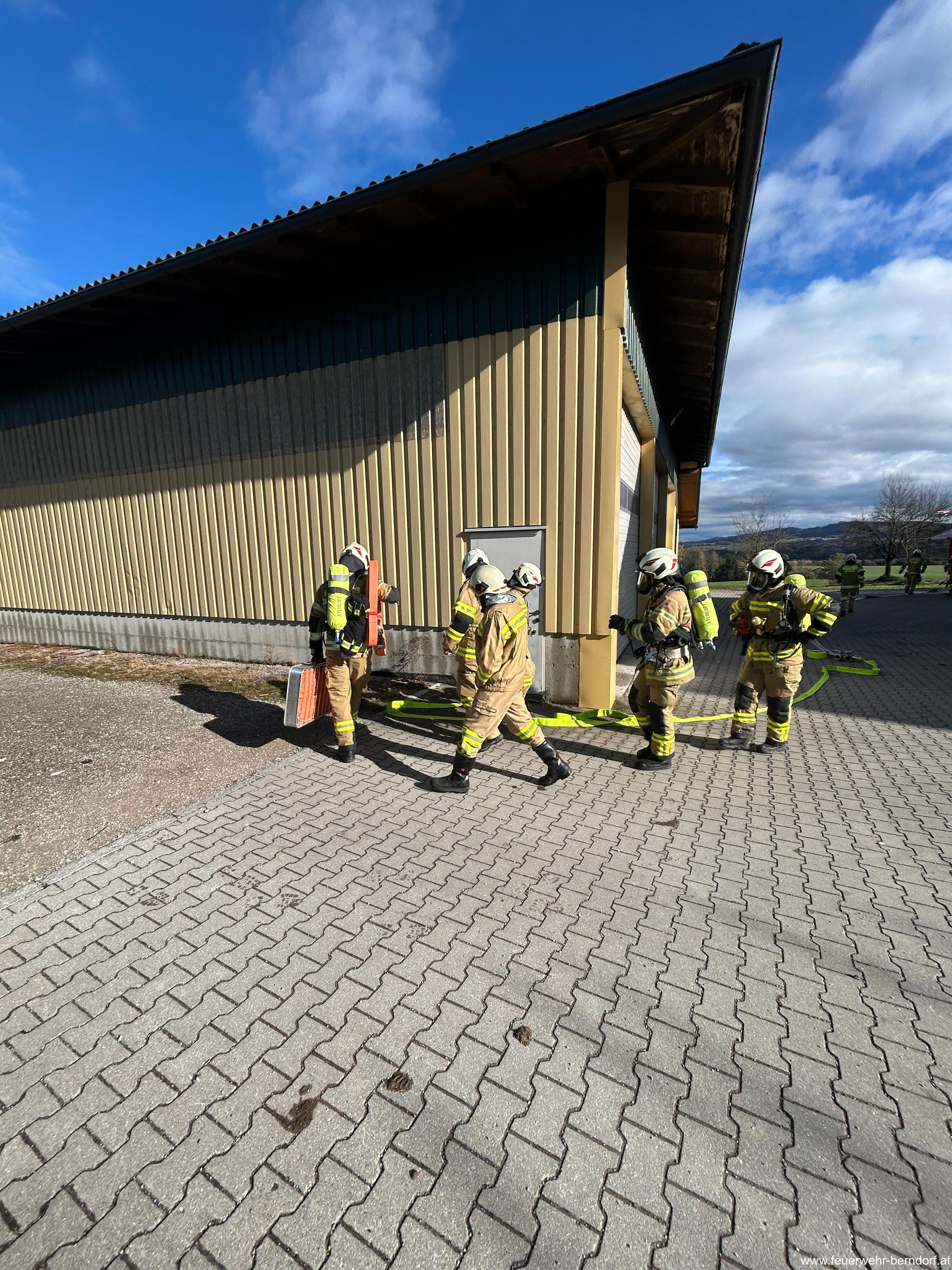 Übungsannahme war der Brand eigenes Landwirtschaftlichen Objektes mit mehreren Vermissten Personen, welche von der Feuerwehrjugend dargestellt wurden.